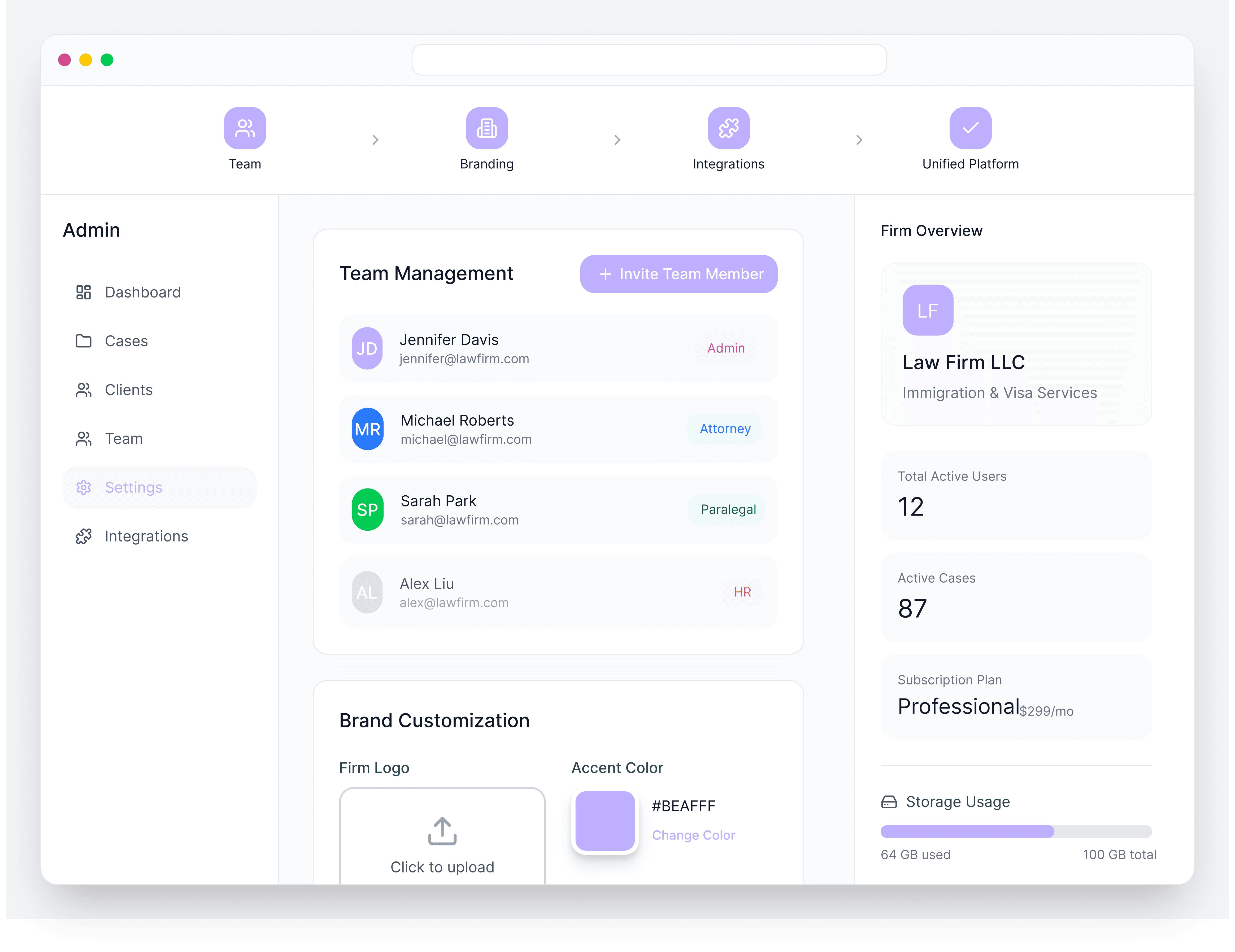 Team & Firm Settings: Manage Your Team, Brand Your Platform, Connect Your Tools